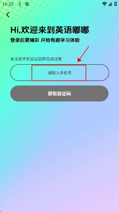 打开英语嘟嘟应用后,新用户需要通过手机号完成登录和账号注册的操作,这样才能进入主界面。