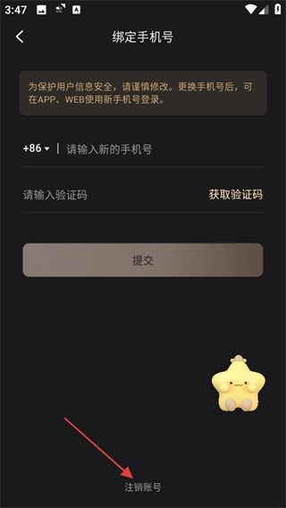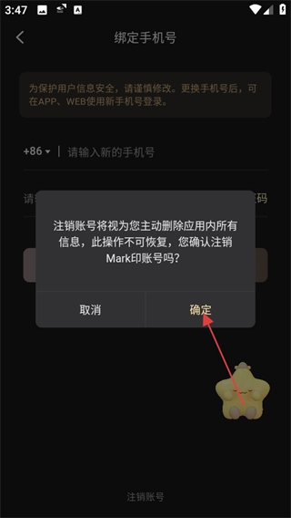 在绑定手机号的页面中,点击注销账号这一选项,会弹出确认弹窗。