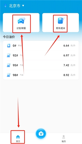 打开交通拍客软件,映入眼帘的首页上,识别举报与购车成本计算功能板块清晰可见。
