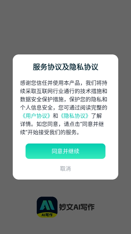 首先在本站完成妙文AI写作的安装,并同意隐私政策与用户协议。
