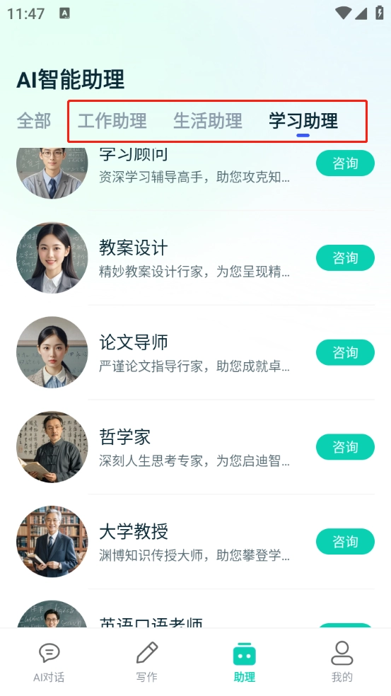 还有一个“AI智能助理”板块,能够帮你解决工作、生活和学习等各方面的问题。