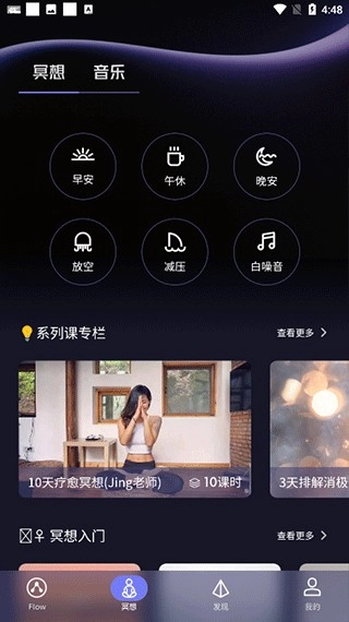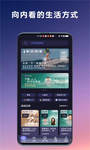 FLOW冥想是一款适合每个人每日使用的身心健康生活方式应用,它能为用户提供睡眠、冥想、放松、专注、瑜伽等内容,还支持记录冥想体验。