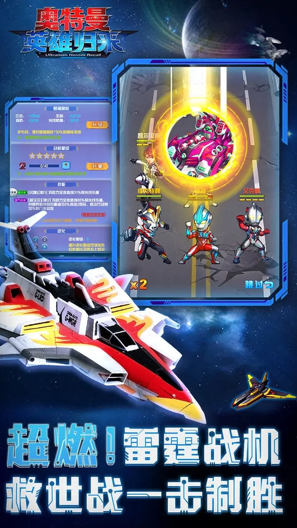 捷德、迪迦、赛罗、梦比优斯、欧布、麦克斯、高斯、贝利亚,全体奥特英雄热血集结!多种形态可随心切换,合击与合体技能华丽又酷炫,地下神殿、K76训练场、宇宙空间站、怪兽墓场,银河BOSS全面降临,熟悉的场景将带领你重返往日战场,再次点燃英雄梦想!