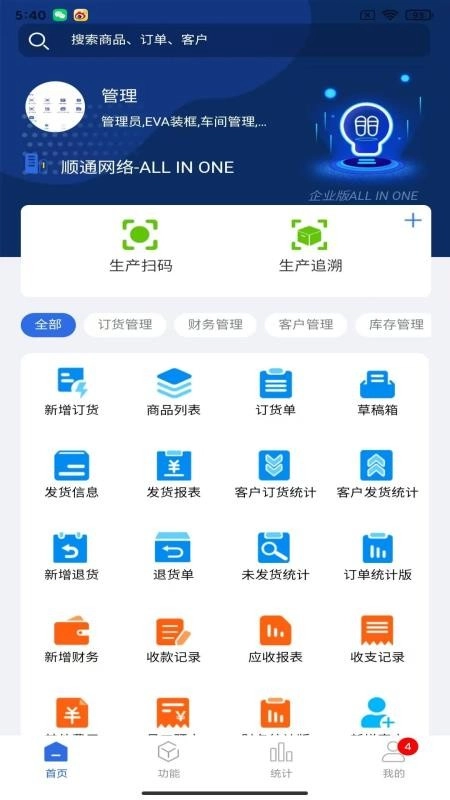 在功能板块,可开展订货管理、财务管理、客户管理等工作。