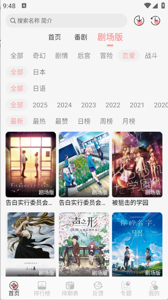 最新最热的番剧都能在线免费观看,界面简洁清爽,分类也十分详细。