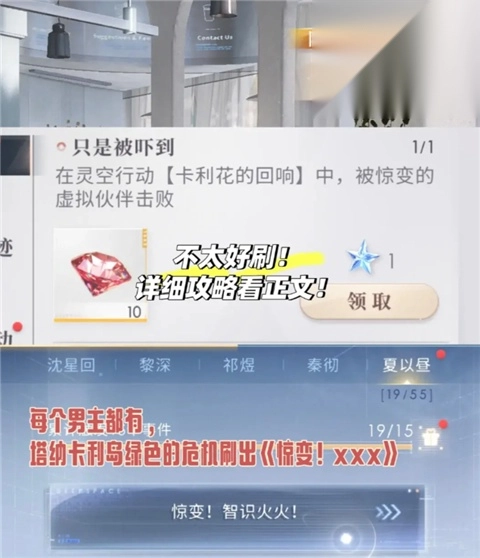 只是被惊吓到:先刷彩色偶遇《上吧虚拟伙伴》,接着刷危机《惊变,xx》(每位男主都有对应的,偶遇选了哪个就刷那个颜色的危机),待在原地不进行战斗,失败之后结束本次行动!(不要退出,继续推演下去)