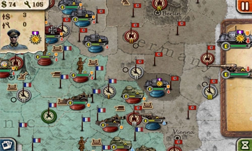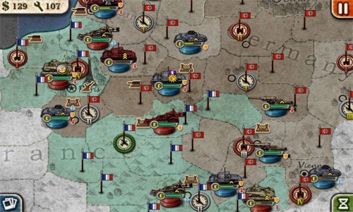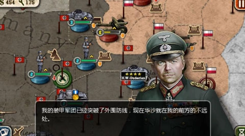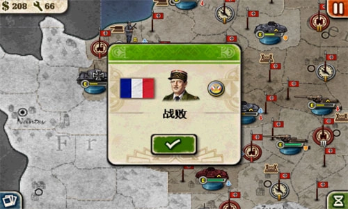 在巴黎组建装甲车,在指挥官坦克的火力支援下,消灭了城外的戴高乐部队,老戴,期待你重新制定战术再次挑战。