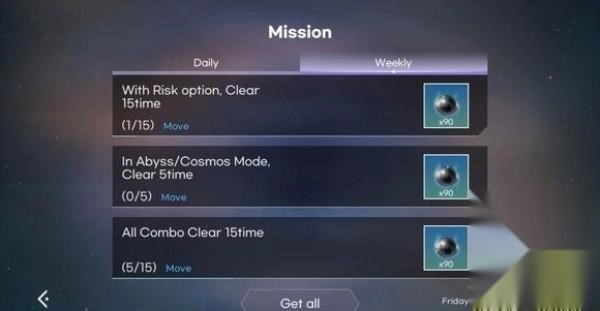 点击菱形图标可收起或展开内容,展开后再次点击任务界面即可查看任务详情。若找不到对应位置,可点击蓝色的“move”按钮直接跳转。每日任务似乎允许游玩未购买的歌曲,不过任务完成后这些歌曲会重新锁定。