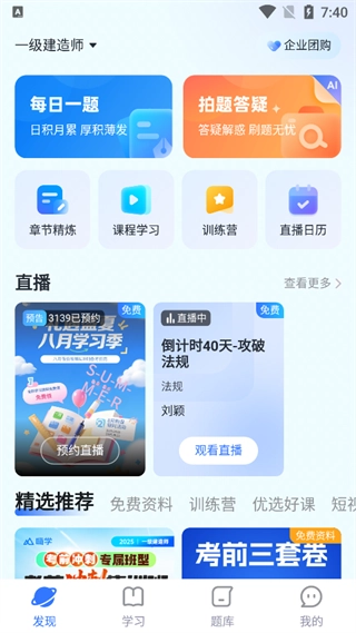 整合每日一题、拍题解惑、课程学习及直播入口,构建高效学习的一站式平台。