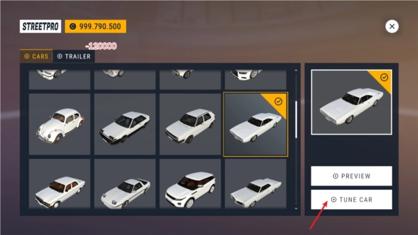购买完成后,点击TUNECAR,我们就可以开始对汽车进行个性化定制了。