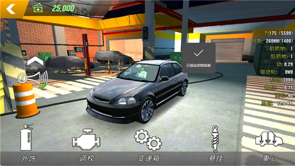 漂移模式能带来逼真又畅快的漂移体验。车辆自定义的选项有很多,比如更换车身颜色、车牌样式,还能加装霓虹灯、调整前大灯颜色,以及更换方向盘、座椅,调节悬架和车轮。车内可以摆放各种装饰小物件,像小鸡、蜘蛛、乌龟、鬣蜥和鸟类摆件都能放。另外,右前座还能加装电脑和游戏机。车辆外部的改装则包括增加额外的车灯和安装扰流板。