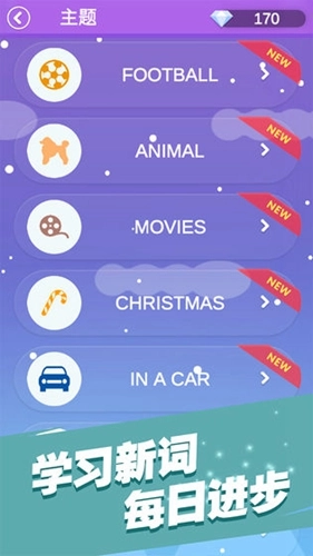 游戏里还新增了主题关卡呢!点击挑选你喜欢的主题,就能在对应的关卡里找到相关单词,是不是超有趣~ 多种主题可选,能帮小伙伴们更轻松地掌握单词属性,是不是很棒呀!