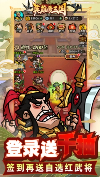 玩家可以招募并培养不同时代的三国英雄。无论是刘备、曹操还是孙权,每个英雄都具备独特的技能与属性。与英雄们并肩作战,打造专属于你的顶级三国阵容。