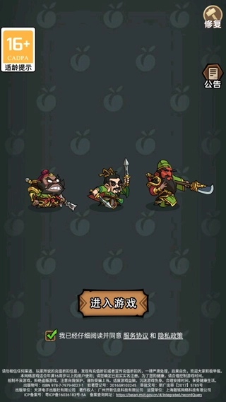 打开英雄爱三国折扣版,登录后点击屏幕开始游戏;
