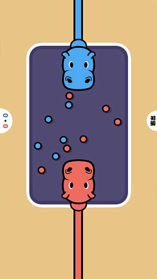 点击屏幕来操控河马,让它吃掉那些小球。当河马吃到和自己颜色相同的小球时,就能获得2分;要是吃到对手颜色的小球,就会扣除1分。谁先积累到80分,谁就赢得胜利!