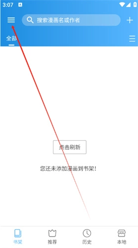 1、打开异次元漫画App,点击屏幕左上角的菜单图标。