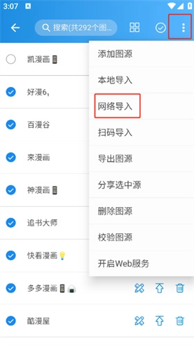 3、在图源管理页面,点击右上角的“网络导入”按钮。