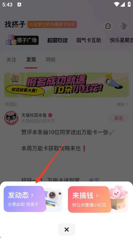 再点击【发动态】,最后编辑好内容后点击发布即可