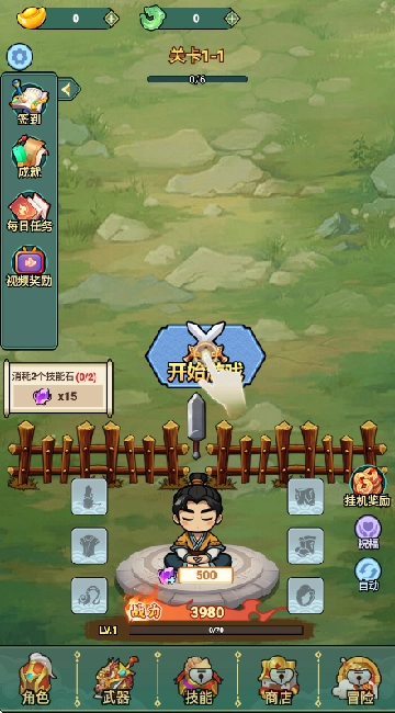 开启自动模式后,后续每一关都无需手动点击,角色会自动对小怪发起攻击。