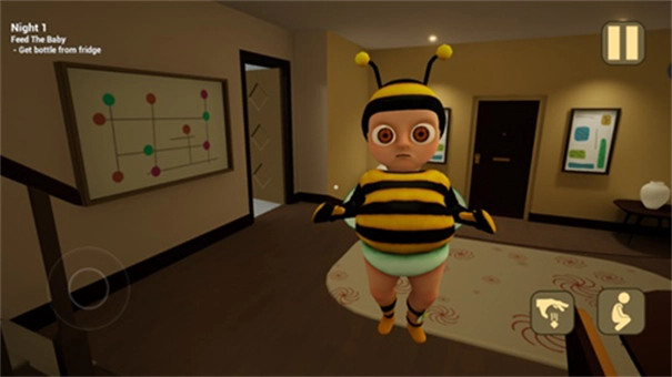 转过身时,会发现宝宝变成了怪物在追赶我们,这时候得马上跑进右侧的兔子门。