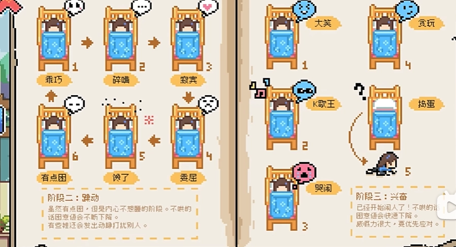 这款游戏包含睡眠、躁动、兴奋等多个阶段,玩家要依据小朋友的不同状态,挑选抱起、讲故事或者使用道具等恰当的安抚方法。