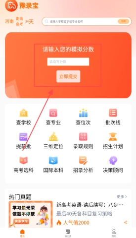 在首页输入你的分数,点击提交按钮。
