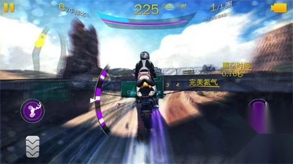 驾驶摩托车时让前轮离地、仅靠后轮前行,是一项相当酷炫的技巧,在《狂野飙车8》里要完成这个动作也不算太难。首先得把紫色的额外氮气蓄满——其实骑摩托和开跑车的原理是相通的,通过转弯漂移能积累黄色氮气,而摩托车还能额外增加紫色氮气,只是它的积累速度相对慢一些。