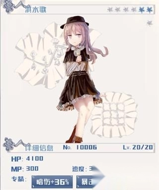 雾珑是[绮梦凝露]家族大小姐,天格为角色[暴击率]增加30%、[物理暴击伤害]增加27%;住尘香是[绮梦凝露]家族二小姐的专属女仆,天格为角色[火属性伤害]增加36%;夭桃绮是天闲城军方要员、军衔上将、[绮梦凝露]家族嫡系,天格为每隔5秒直径500范围内附加[烧伤]持续3秒且每1秒造成7%攻击力伤害、角色[对烧伤目标伤害]增加15%;欺霜是研雕为朴学院的教师且有一个自称女装大佬的妹妹(靡靡),天格为每隔5秒直径500范围内附加[中毒]持续3秒且每1秒造成7%攻击力伤害、角色[对中毒目标伤害]增加15%;淇水歌是白鸽茶会top,天格为角色[暴击率]增加20%、[暗属性伤害]增加24%;水仙吟是崇尚旧世代规则的研究者,天格为每隔5秒直径500范围内附加[怠惰]持续3秒;云梦泽是[绮梦凝露]家族元老会情报女仆,天格为角色[饰类型礼器伤害]增加36%;洛水烟波是天闲图书馆的管理员,天格为角色[水属性伤害]增加36%。