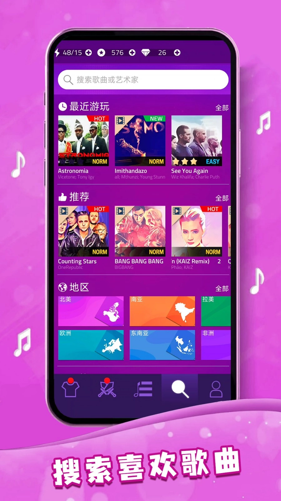 指尖节奏大师最新版是一款有趣的音乐节奏闯关游戏,让你体验指尖跳跃的乐趣,里面收录了各类热门歌曲,你只需跟着节奏舞动手指,完成闯关任务后会根据得分评级,得分越高奖励越丰厚,还能解锁更多挑战关卡!