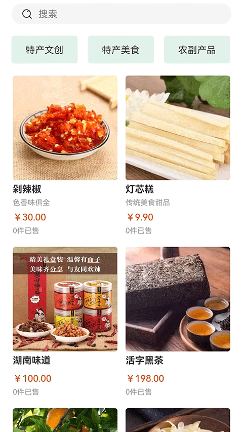 打开页面后,点击其中的【农特产品】选项,即可进入文创特产页面。