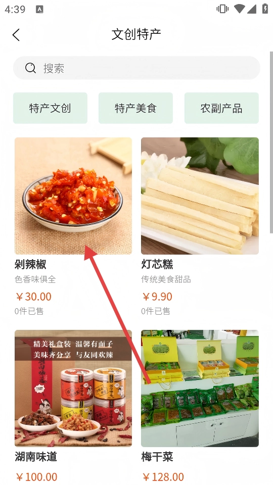 在文创特产页面,挑选我们的目标商品,点击进入商品详情页面。