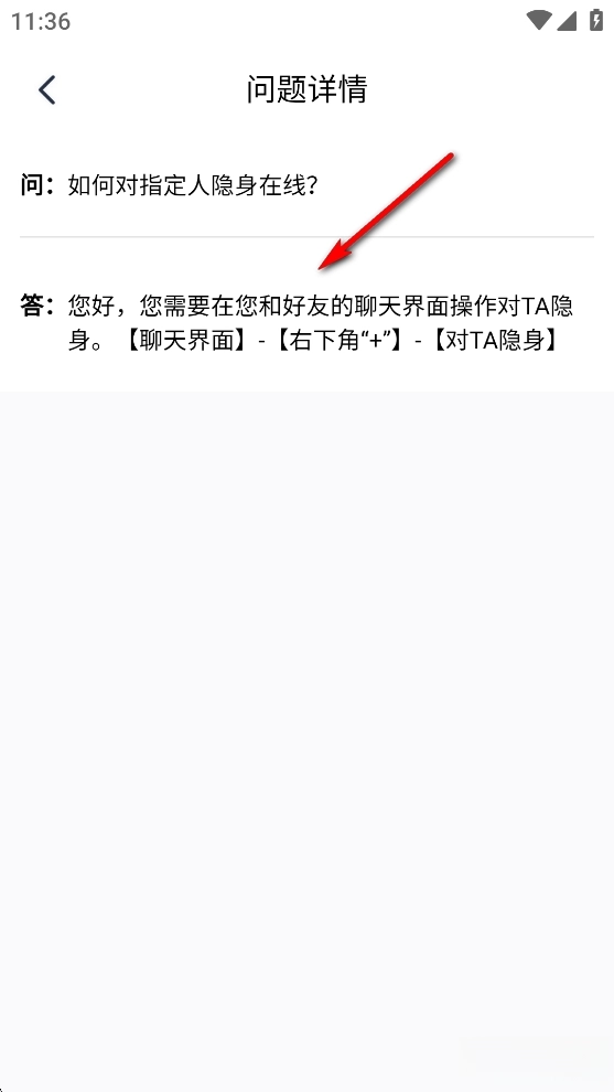 在和指定联系人的聊天界面,点击右下角的【+】按钮,接着选择【对TA隐身】选项就可以了。