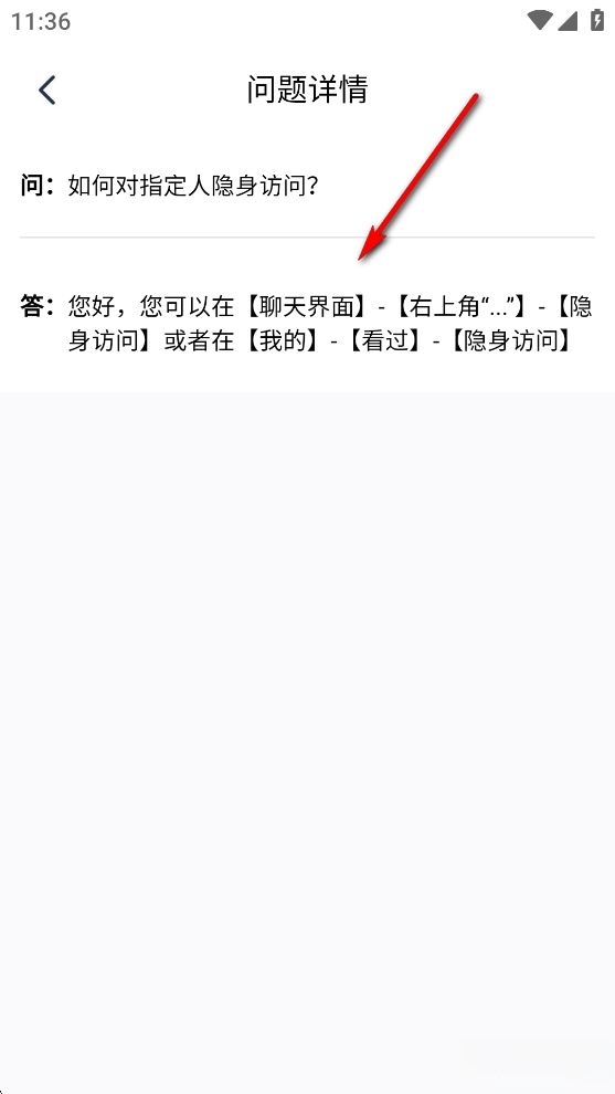 在和指定联系人的聊天页面,点击右上角的【…】图标,接着选择【隐身访问】就行;或者也可以通过【我的】-【看过】-【隐身访问】这个路径来操作。