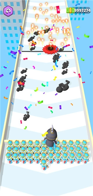在行进过程中不断向迎面而来的敌人开火,同时收集场景里的队友,以此让己方团队人数持续增长。