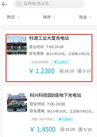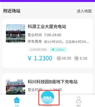 2、认证通过后,到主页中,它会为用户提供附近的充电桩信息,点击其中一个。