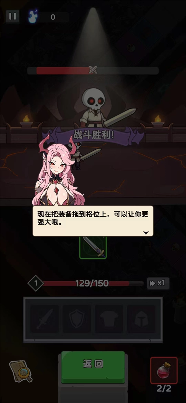 遇到怪物触发战斗,击败怪物可获得装备奖励