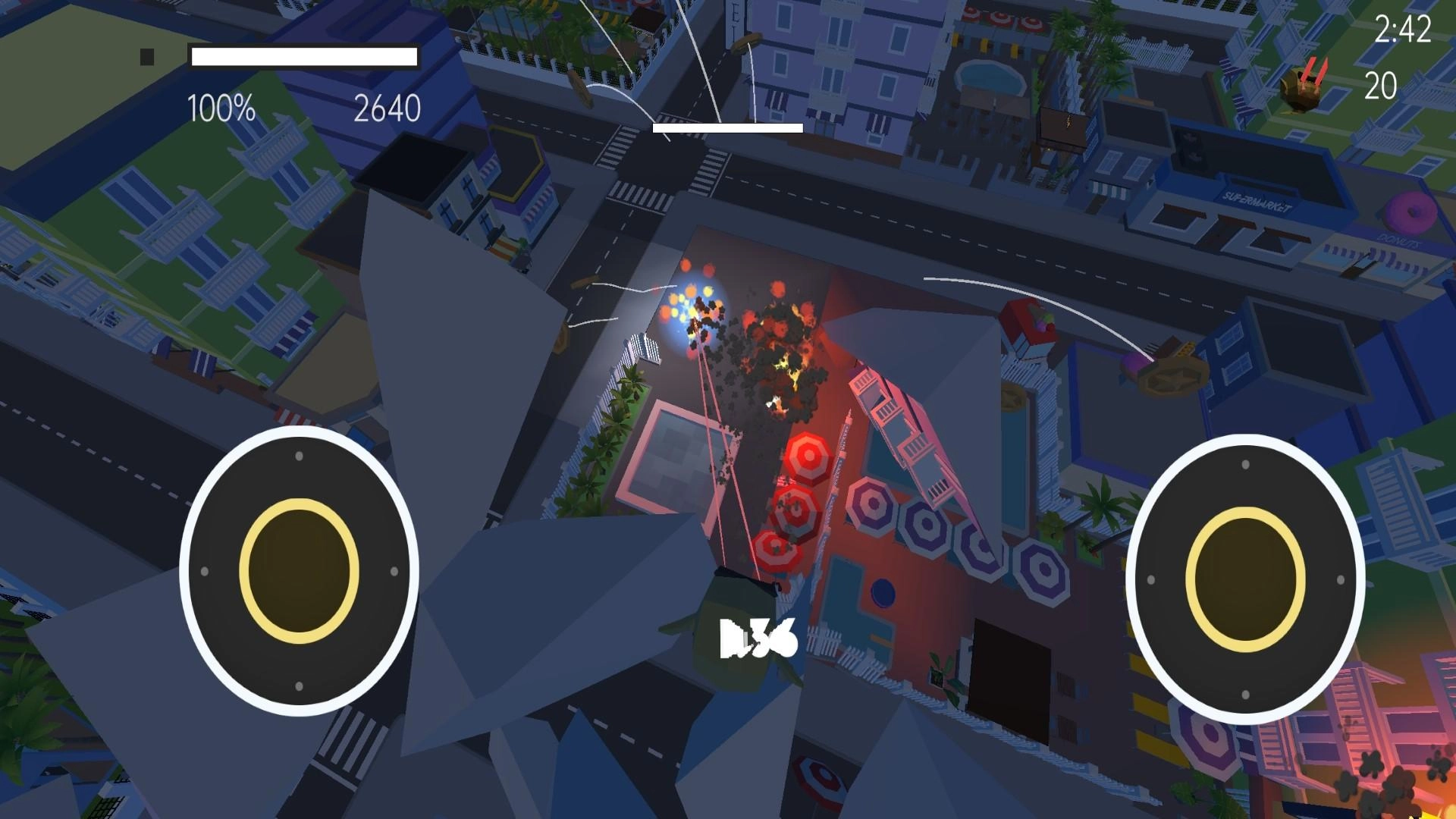 游戏的左侧区域用于操控角色进行左右方向的移动,右侧区域则负责控制角色的视角转动以及发起攻击指令。玩家能够不受限制地在游戏地图内展开探索与战斗行动,目标是清除游戏中存在的全部敌人与建筑物。当玩家成功摧毁建筑物后,即可获得光能这一资源。