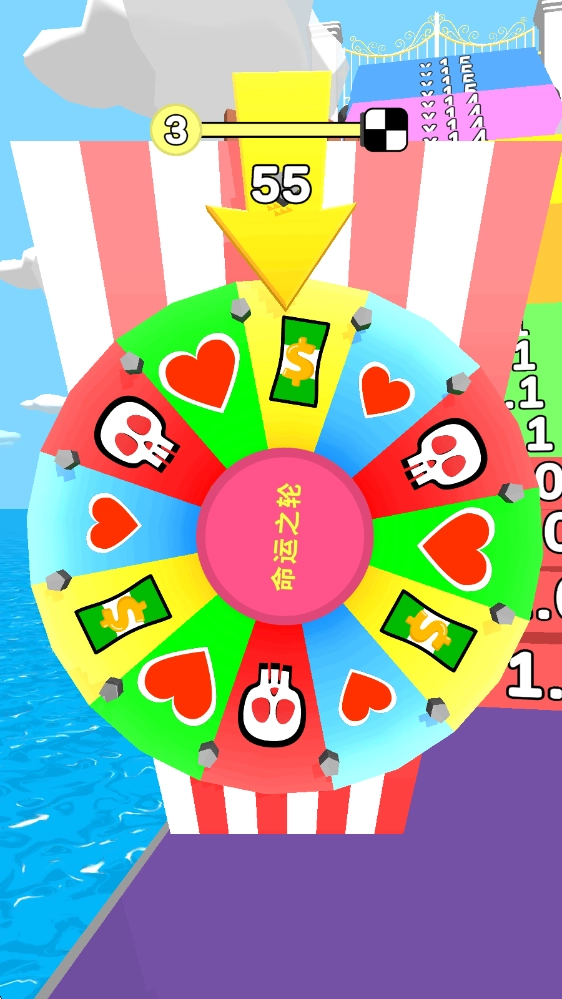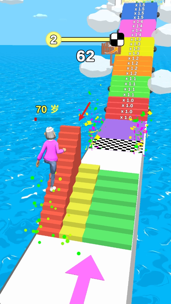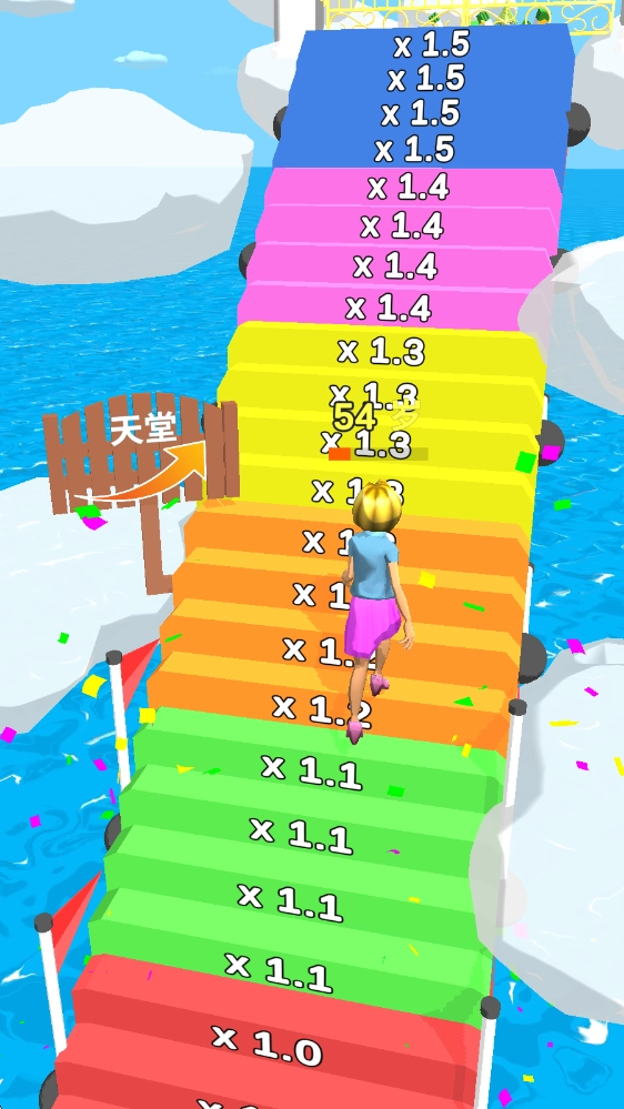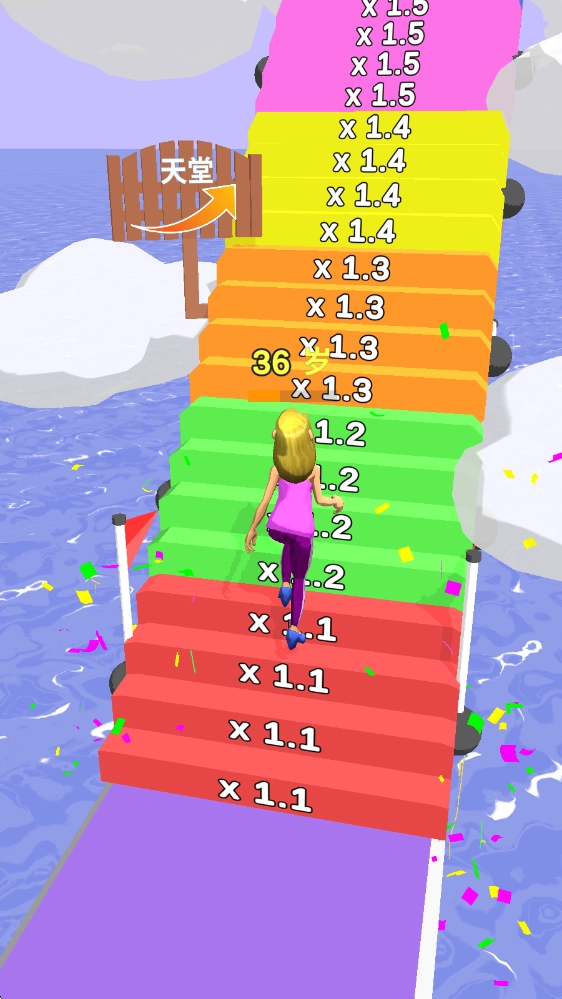 5、到达终点后,角色会登上阶梯,最终奖励由其停靠的位置来确定。