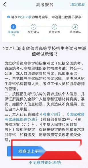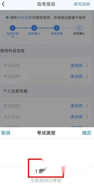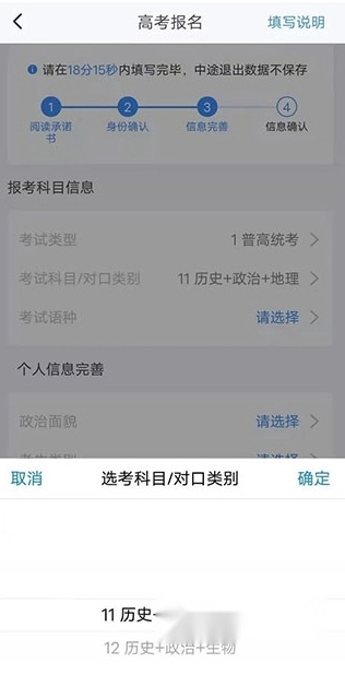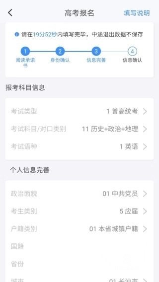 选择高考报名,看到提示需要在指定时间内填写完毕