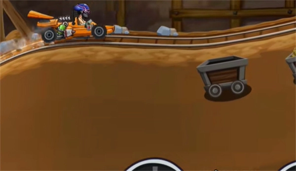 整个屏幕上只有两个操控键,一个是加速键,一个是刹车键。在游戏里,你得控制好这两个键来保持平衡,不然车会翻掉,导致游戏失败。所以这挺考验玩家操作能力的。