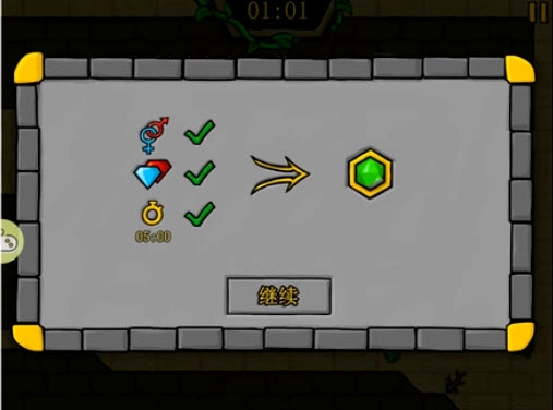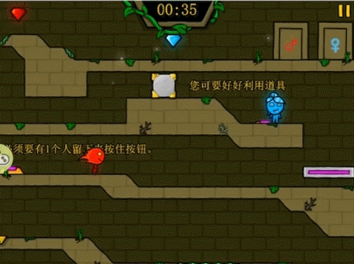 3、转动杠杆,按下按钮,完成《森林冰火人》系列的32个关卡。