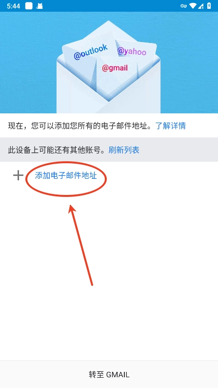打开谷歌邮箱之后,点击“添加电子邮件地址”;