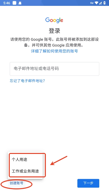 点击左下角的“创建账号”按钮,接着根据自身需求选择个人用途或工作业务用途。