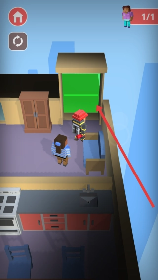 在楼层内扑灭明火后,引导被困人员前往绿门位置,保障所有人安全撤离危险区域,待该楼层救援任务完成即可推动游戏进度。