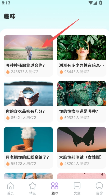 打开软件点击趣味板块、进入对应页面。
