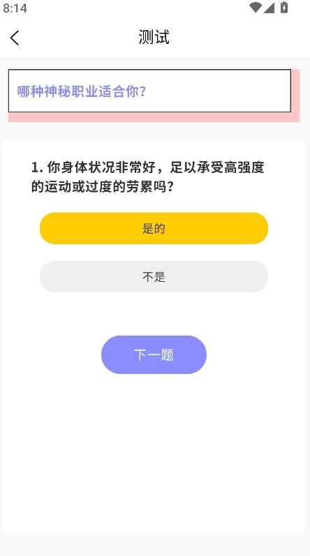 自测主题丰富多样,包含职业适配、异性暗恋检测等趣味方向,能满足不同的自测兴趣需求。