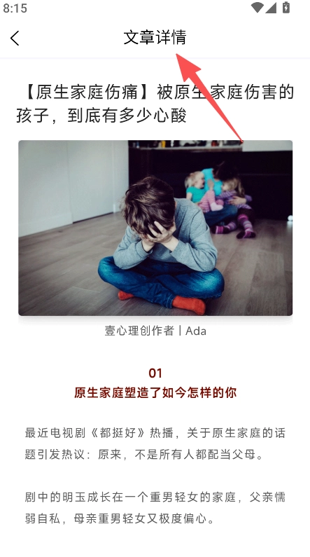 具备文章浏览功能,点击文章条目进入详情页,查看完整情感内容及配套的图文信息。