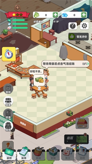 1、装修与扩建:玩家能够依据自身的审美偏好和经营规划,对餐厅开展装修与扩建工作,以此增强餐厅的吸引力并提高其容纳顾客的能力。