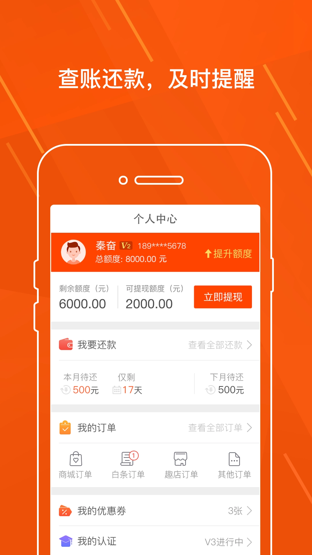 还款提醒功能支持用户随时查询借款金额与还款时间,还能为用户推送及时的还款通知,从而帮助用户避免因逾期产生更高的利息。