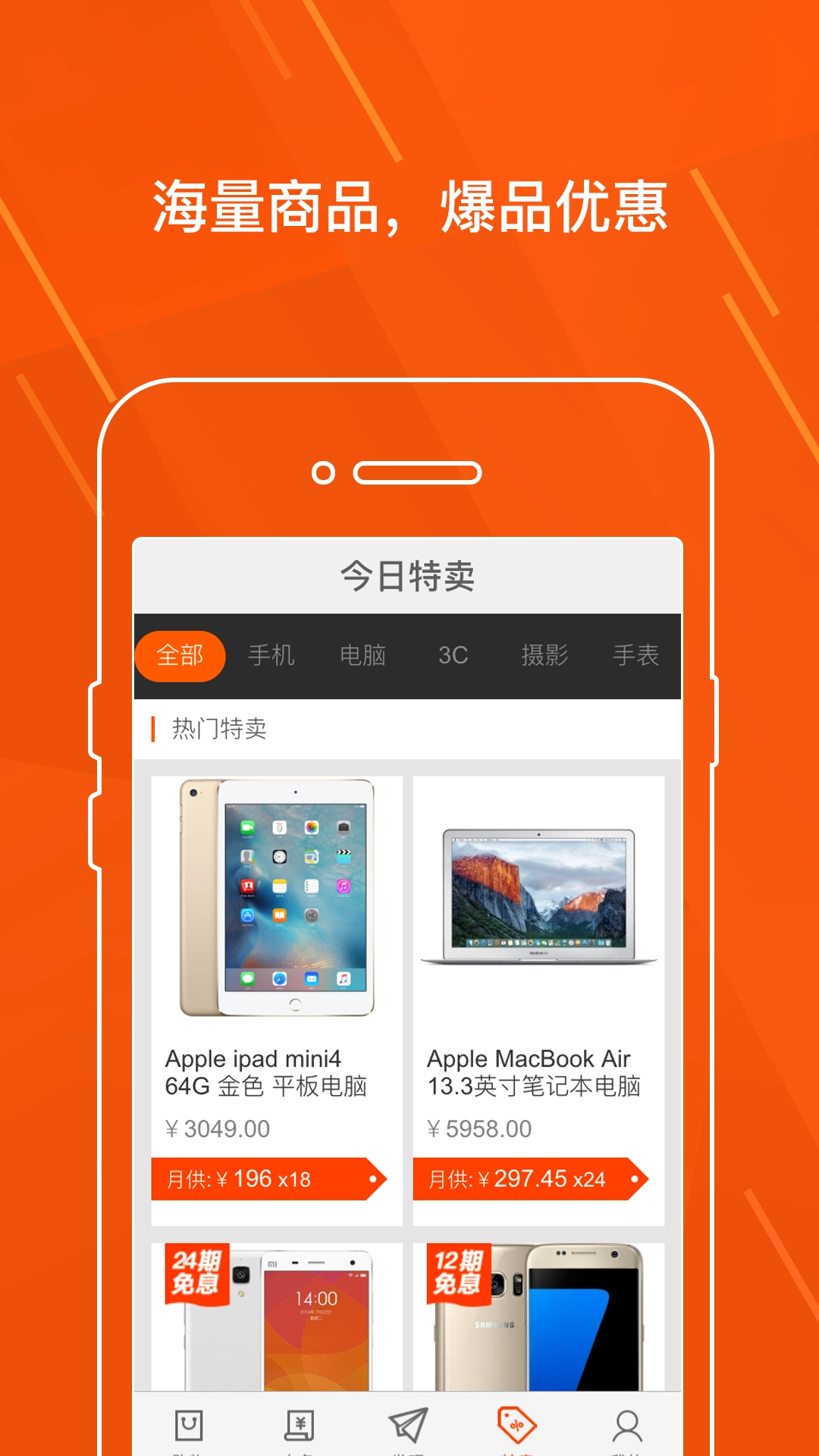 浏览商品,选择所需购买的商品,并申请分期付款。
